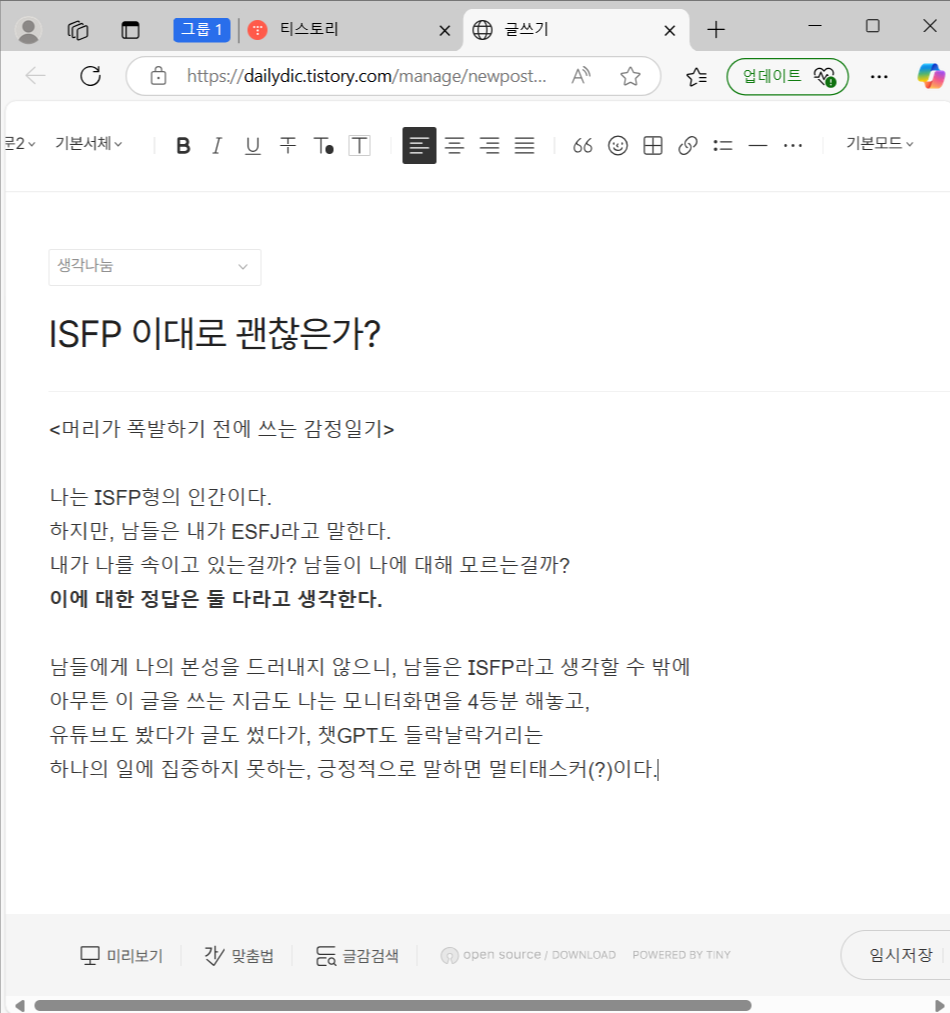 남들에게 나의 본성을 드러내지 않으니, 남들은 ISFP라고 생각할 수 밖에